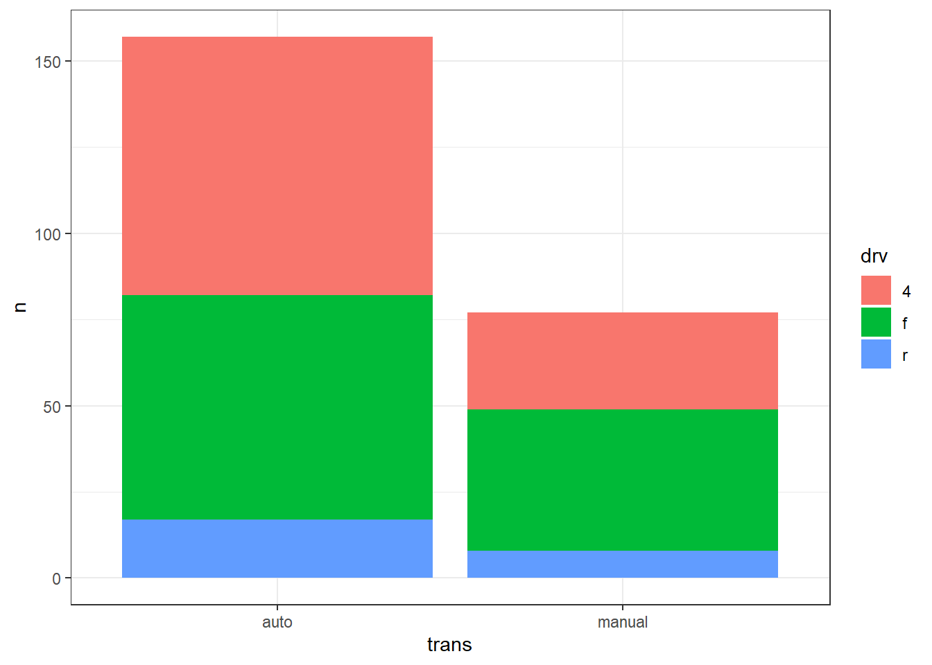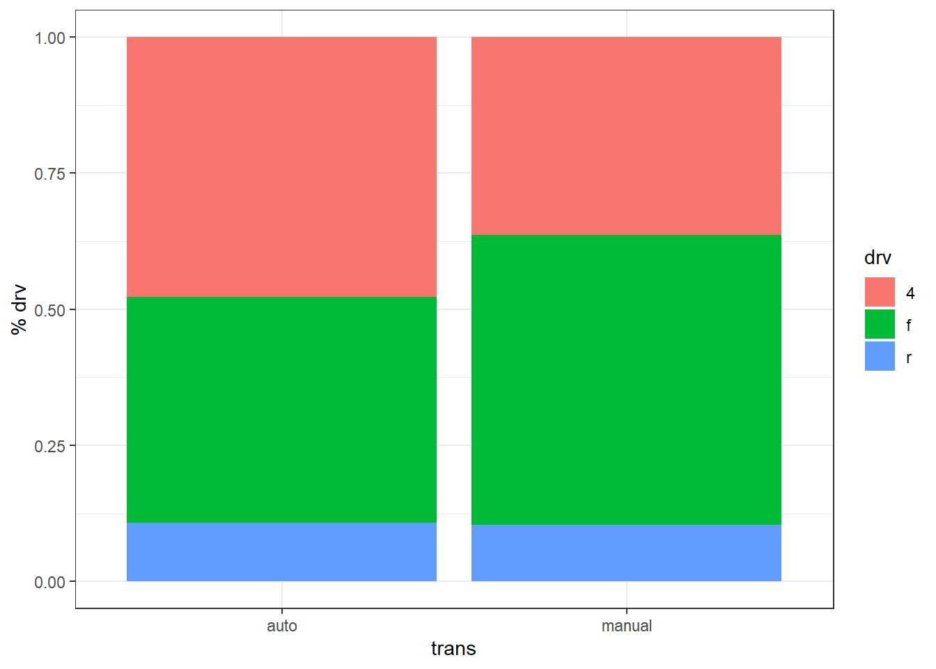 # ou, de façon équivalente : facet_grid(drv ~ trans)